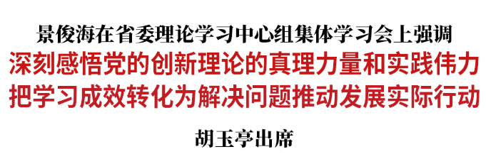 6月19日,省委書(shū)記景俊海主持召開(kāi)省委理論學(xué)習(xí)中心組集體學(xué)習(xí)會(huì),深入學(xué)習(xí)貫徹習(xí)近平總書(shū)記關(guān)于主題教育的系列重要講話和重要指示批示精神。景俊海強(qiáng)調(diào),要堅(jiān)持以習(xí)近平新時(shí)代中國(guó)特色社會(huì)主義思想為指引,深刻感悟黨的創(chuàng)新理論的真理力量和實(shí)踐偉力,切實(shí)把學(xué)習(xí)成效轉(zhuǎn)化為解決問(wèn)題、推動(dòng)發(fā)展的實(shí)際行動(dòng)。省委副書(shū)記、省長(zhǎng)胡玉亭出席會(huì)議。