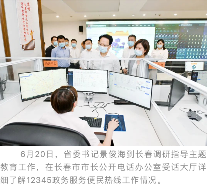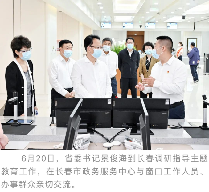 景俊海首先來到長春市政務服務中心,與窗口工作人員、辦事群眾親切交流,要求長春市進一步創新政務服務模式,持續提升辦事效率,更好方便群眾。景俊海現場觀看政策服務數字化場景應用演示,強調要深入推進政務服務數字化,把更多新業務新功能納入“一網通辦”“一碼通辦”,推動數字政府建設取得更大成效。在長春市市長公開電話辦公室受話大廳,景俊海詳細了解12345政務服務便民熱線工作情況,強調要充分發揮便民熱線溝通群眾的橋梁紐帶作用,進一步完善部門聯動的問題解決機制,群眾反映集中問題要及時公開處理進度和結果,切實以為民辦實事、解難題的具體成果檢驗主題教育成效。