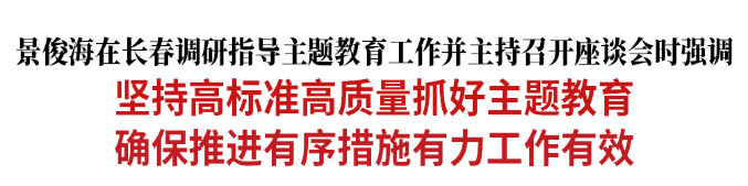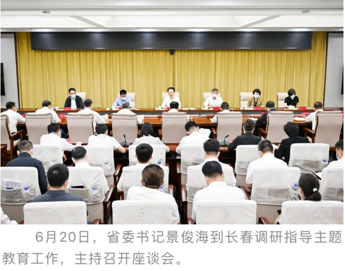 6月20日,省委書記、省委主題教育領導小組組長景俊海到長春調研指導主題教育工作,并主持召開座談會,推動黨中央在全黨開展主題教育和大興調查研究的決策部署在吉林落地落實。景俊海強調,要深入貫徹習近平總書記關于主題教育的重要講話和重要指示批示精神,堅持高標準高質量抓好主題教育,確保推進有序、措施有力、工作有效,持續推動習近平新時代中國特色社會主義思想入腦入心、見于行動。