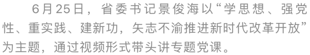 在“七一”即將到來之際,根據(jù)中央要求,按照省委主題教育工作安排,省委書記景俊海今天(6月25日)通過視頻形式帶頭講專題黨課,以“學(xué)思想、強(qiáng)黨性、重實踐、建新功,矢志不渝推進(jìn)新時代改革開放”為主題,帶領(lǐng)廣大黨員干部深學(xué)細(xì)悟習(xí)近平新時代中國特色社會主義思想。景俊海強(qiáng)調(diào),要從黨的科學(xué)理論中汲取奮進(jìn)力量,在新征程上譜寫改革開放新篇章,為推動吉林全面振興取得新突破注入強(qiáng)勁動力。省委副書記、省長胡玉亭主持專題黨課。省政協(xié)主席朱國賢出席。