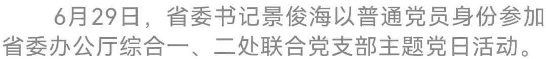 在喜迎中國共產黨成立102周年之際,省委書記景俊海今天(6月29日)以普通黨員身份參加省委辦公廳綜合一、二處聯合黨支部“深入開展學習貫徹習近平新時代中國特色社會主義思想主題教育,努力做到‘以學鑄魂、以學增智、以學正風、以學促干’”主題黨日活動,與黨員同志共同學習黨的科學理論,深入交流體會感悟,促進提升工作水平。景俊海強調,要全面貫徹習近平總書記關于開展主題教育的系列重要講話重要指示精神,進一步堅定理想信念、提升思想境界、加強黨性鍛煉,在推動吉林全面振興中勇挑重擔、爭先奮進,以實際行動堅決擁護“兩個確立”、堅決做到“兩個維護”。