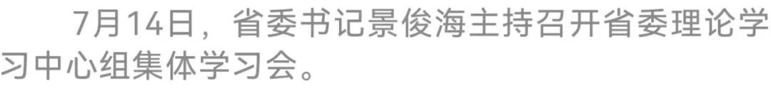 7月14日,省委書記景俊海主持召開省委理論學習中心組集體學習會,深入學習貫徹習近平總書記關于主題教育的系列重要講話重要指示精神,專題學習習近平總書記在文化傳承發展座談會上的重要講話精神和關于以學正風的重要要求。景俊海強調,要堅持以習近平新時代中國特色社會主義思想為指引,更好擔負起新時代新的文化使命,進一步堅定文化自信自強,促進優秀傳統文化傳承發展,推動文化強省建設取得扎實成效。省委副書記、省長胡玉亭出席會議。
