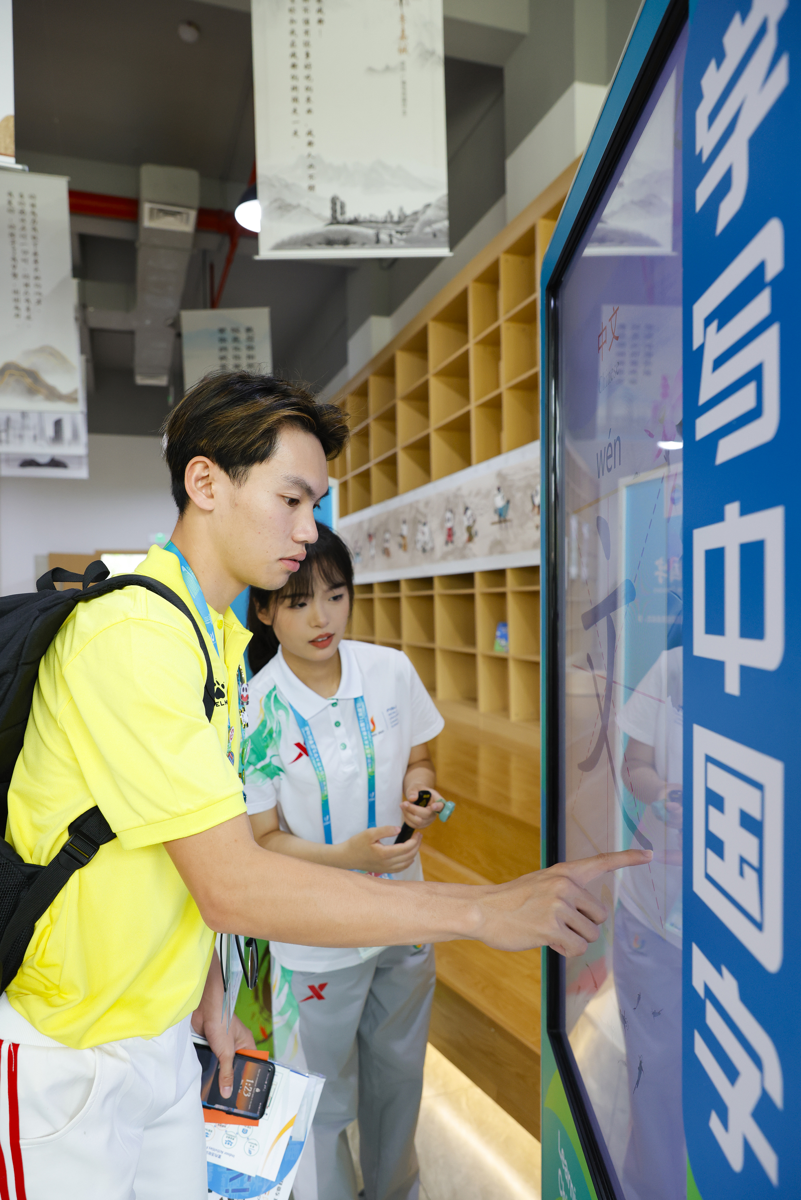 成都大運村里設置了書法、國畫、蜀繡、傳統樂器等豐富多彩的中國文化互動體驗項目。運動員和教練員在休息之時,紛紛前來感受中國文化的魅力,了解學習中國文化。