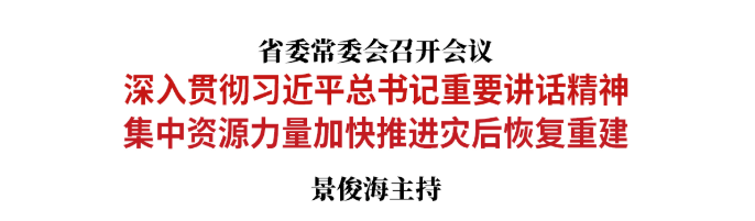 8月24日,省委書記景俊海主持召開省委常委會會議,進一步貫徹落實習近平總書記在8月17日中共中央政治局常務委員會會議上的重要講話精神,專題研究全省洪澇災害災后恢復重建工作。