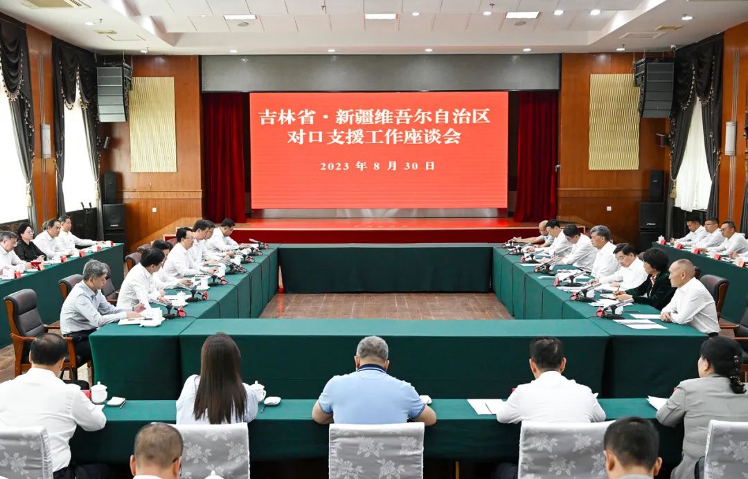 8月30日,吉林省黨政代表團抵達新疆阿勒泰開展學習考察,吉林省、新疆維吾爾自治區召開對口支援工作座談會。新疆維吾爾自治區黨委書記,新疆生產建設兵團黨委第一書記、第一政委馬興瑞主持座談會并講話。吉林省委書記景俊海出席并講話。