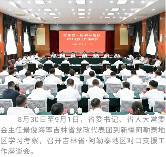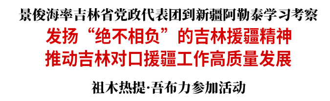 8月30日至9月1日,省委書記、省人大常委會主任景俊海率吉林省黨政代表團到新疆阿勒泰地區,就認真貫徹習近平總書記關于新疆工作和對口支援工作的重要論述、推動吉林對口援疆工作高質量發展進行學習考察,深入我省對口支援的阿勒泰市、吉木乃縣、布爾津縣、哈巴河縣,實地了解對口支援各項工作開展情況。新疆維吾爾自治區人大常委會黨組書記、主任祖木熱提·吾布力參加活動。
