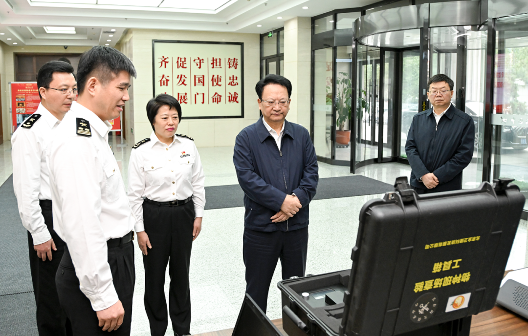 景俊海首先來到海關智能化查驗技術展示區,觀摩現場查驗裝備操作演示,察看守護國門安全成果,勉勵全體同志始終胸懷“國之大者”,站在維護國家“五大安全”政治高度,科學運用數字化、信息化技術手段,不斷提高行政執法能力水平,扎實做好監管、緝私、檢驗檢疫等工作,當好讓黨放心、讓人民滿意的國門衛士。