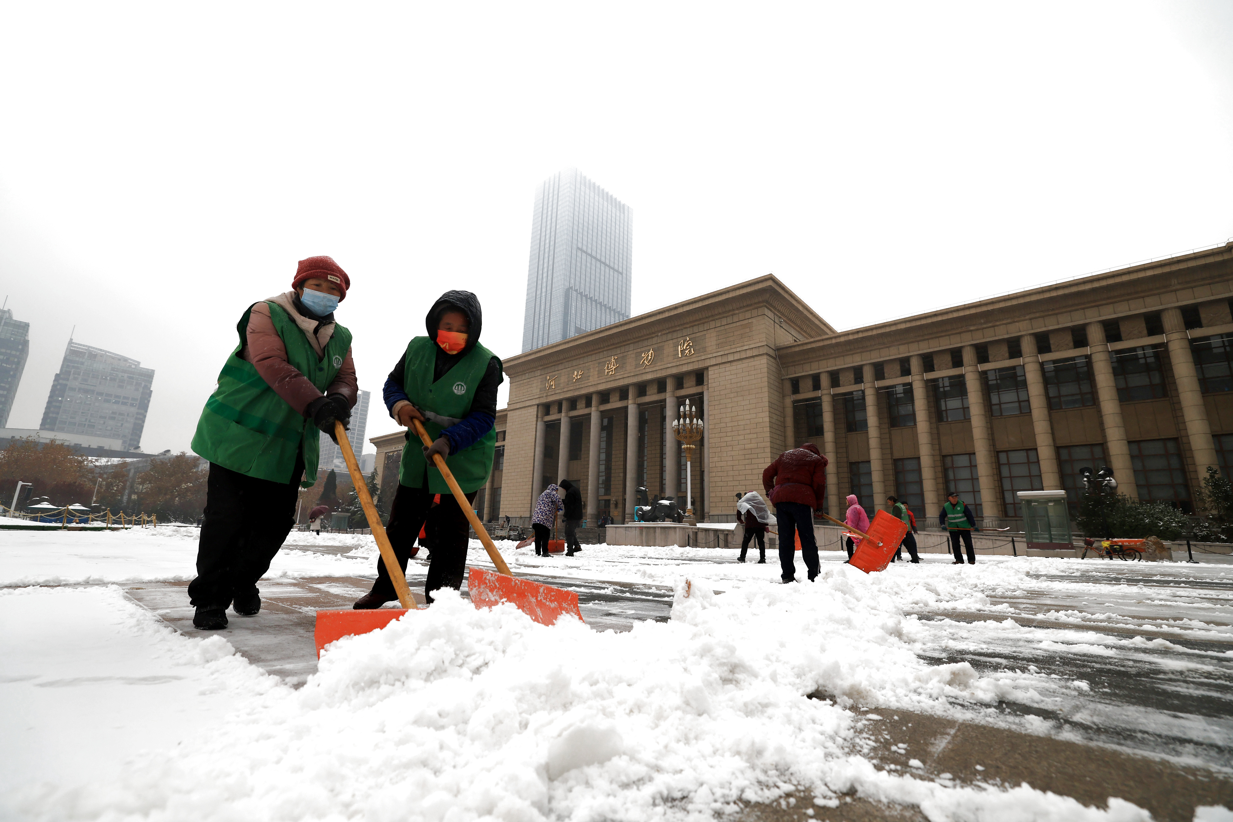 12月14日,我國部分地區(qū)大范圍雨雪降溫天氣仍在持續(xù),中央氣象臺發(fā)布寒潮橙色預(yù)警,暴雪、冰凍黃色預(yù)警和大風(fēng)藍色預(yù)警。各地有關(guān)部門組織人力清理積雪,保障安全。