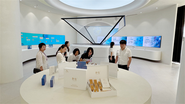 在總共5層樓的生產(chǎn)基地里,處處彰顯著發(fā)展新質(zhì)生產(chǎn)力的科技成果。1樓是生命科學(xué)展廳及接待中心,沉浸式7D展廳展示了再生醫(yī)學(xué)的奧妙,展臺里擺放著臍帶提取物系列化妝品。2樓是研發(fā)制備中心,包含細(xì)胞功能實(shí)驗(yàn)室、制備區(qū)及檢測區(qū)等,配備了培養(yǎng)箱、血細(xì)胞分析儀、流式細(xì)胞檢測儀等國際先進(jìn)的細(xì)胞檢測設(shè)備。3樓是外泌體產(chǎn)業(yè)轉(zhuǎn)化基地,包含生產(chǎn)車間、檢驗(yàn)區(qū)、輔助功能區(qū),配備50L和300L兩套真空均質(zhì)乳化機(jī)組、灌裝流水生產(chǎn)線、恒溫恒濕培養(yǎng)箱、超凈工作臺等先進(jìn)設(shè)備,生產(chǎn)設(shè)施和檢驗(yàn)設(shè)施完全符合產(chǎn)品全項(xiàng)要求。4樓是綜合服務(wù)中心,5樓是康養(yǎng)醫(yī)院。