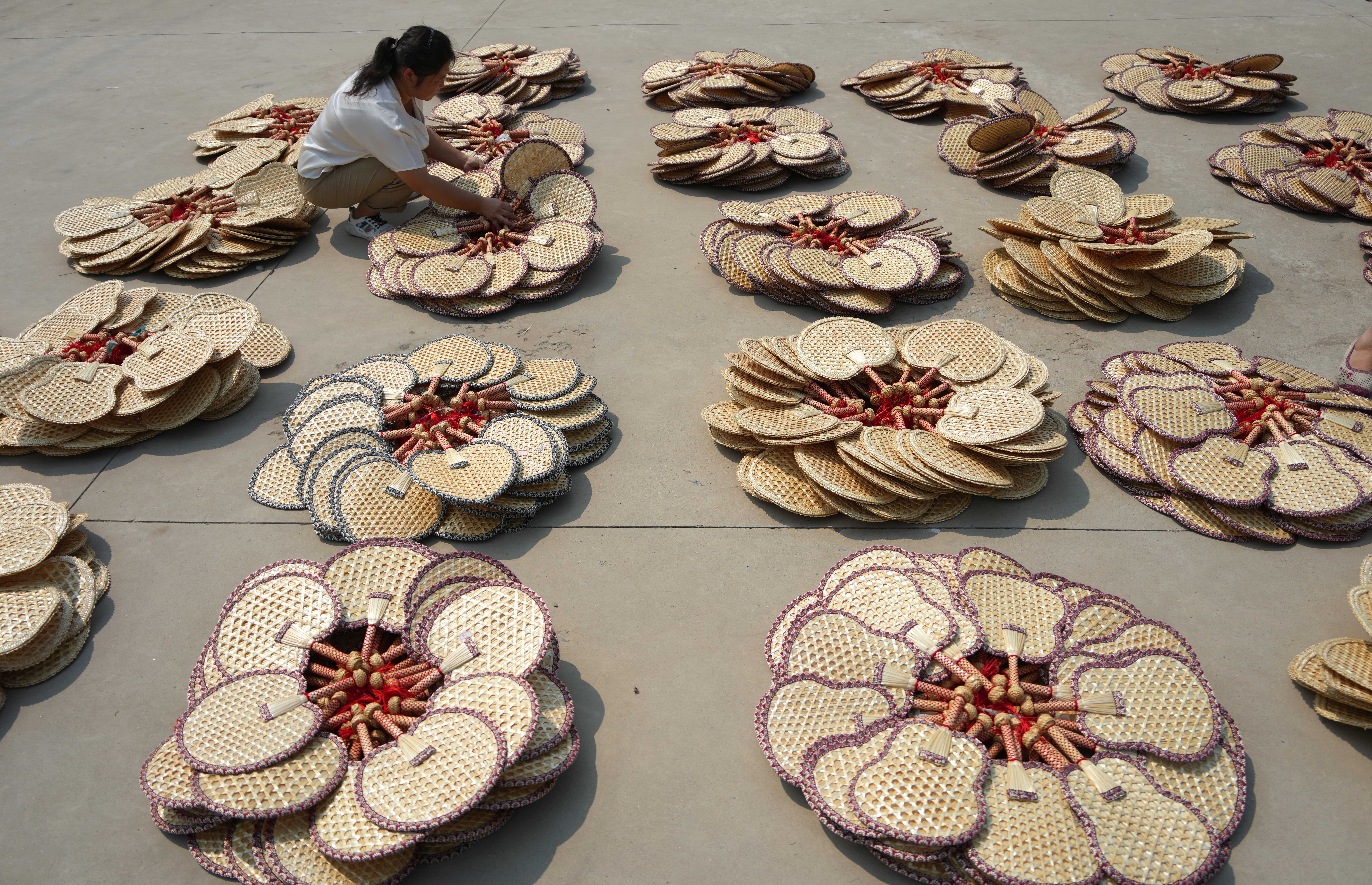 近日,在山東省新泰市羊流鎮,當地農戶忙著利用當年麥收留下的麥稈,制作麥稈扇用于銷售。山東省新泰市羊流鎮有制作麥稈扇的傳統,麥稈經過清洗、編網、剪樣、縫邊、上把等10多道工序,被農戶制作成輕巧的扇子。目前,在羊流鎮及周邊鄉鎮從事麥稈扇加工制作的農戶已達2萬多人,麥稈扇產業拓寬了當地農戶的增收致富路。