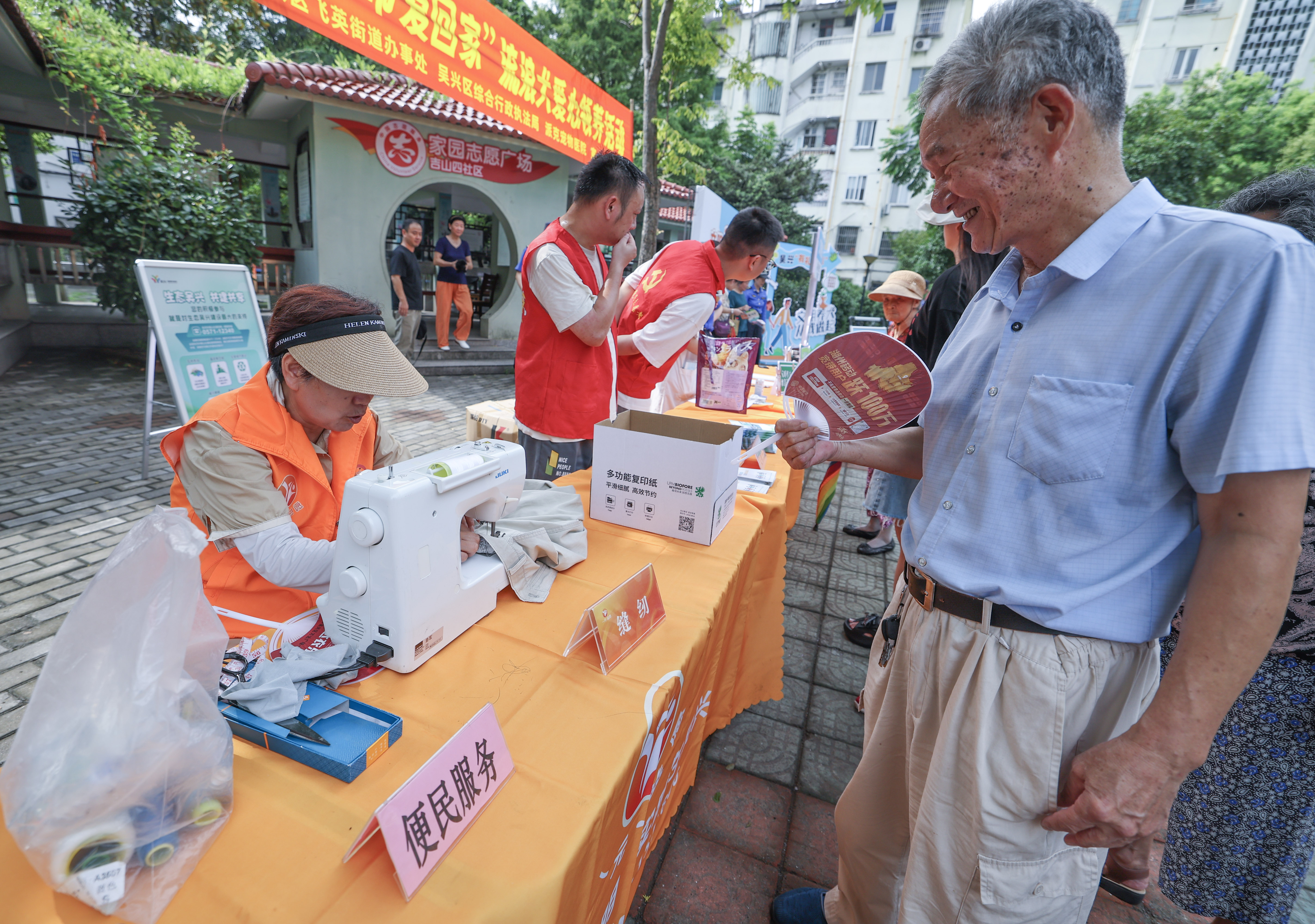 8月21日,浙江省湖州市吳興區飛英街道聯合綜合行政執法局飛英中隊、飛英派出所、吳興區螞蟻公益協會等在吉山四社區開展“有禮市集”活動,為居民提供理發、縫補、家電維修、寵物疫苗接種等便民服務,同時開展反詐宣傳、禁毒宣傳、文明養犬知識科普等,希望通過這樣的方式進一步提升居民文明素養、倡導文明新風尚。