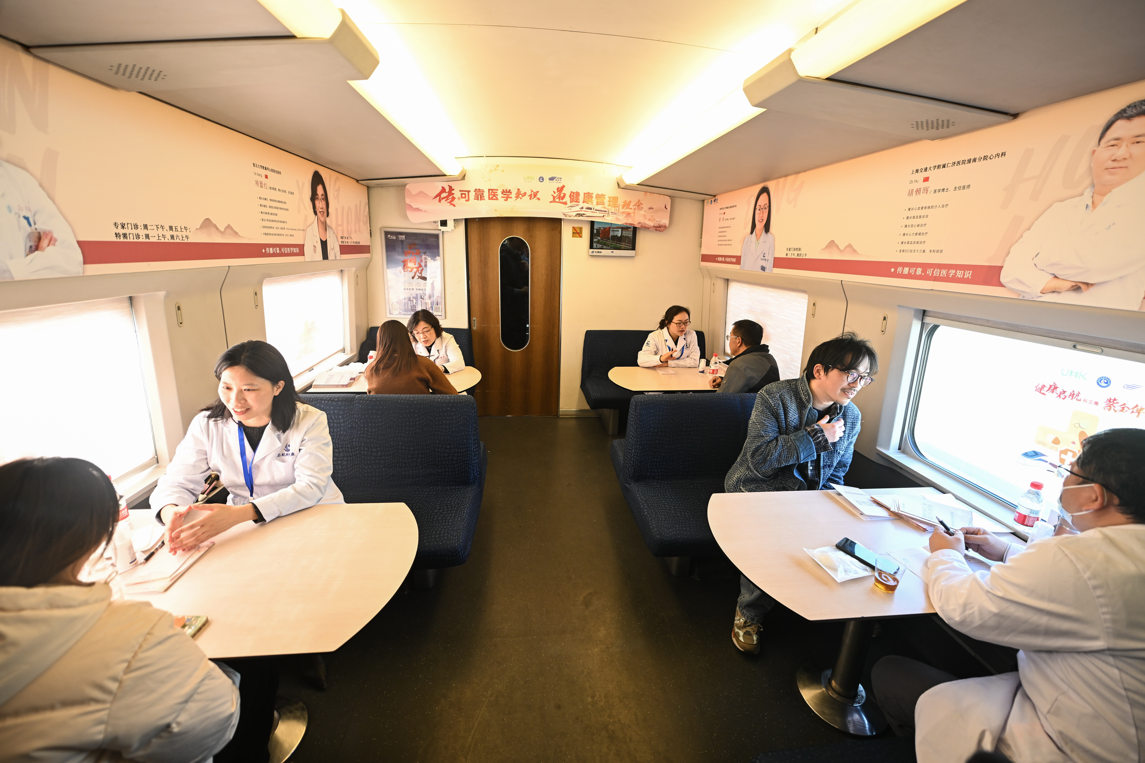 12月8日,在G8388次長三角超級“環(huán)線”列車由上海站駛往南京南站的旅途中,中國鐵路上海局集團有限公司聯(lián)合啟航新健康博士團開展“健康啟航長三角,紫金伴行到萬家”義務健康咨詢活動。來自上海長海醫(yī)院、仁濟醫(yī)院、華山醫(yī)院等三甲醫(yī)院的8名專家為旅客提供腎內科、心內科、消化內科、內分泌科等多個領域的醫(yī)療咨詢,受到歡迎。