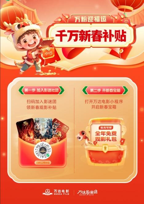 萬(wàn)粉迎福運(yùn),在春節(jié)期間加入萬(wàn)達(dá)影迷團(tuán),還可瓜分千萬(wàn)新春補(bǔ)貼!超值觀影優(yōu)惠券、新春寶箱、紅包雨等豐富多彩的優(yōu)惠活動(dòng)等你參加。同時(shí),省內(nèi)九座萬(wàn)達(dá)廣場(chǎng),開(kāi)啟新春享新禮活動(dòng)!至省內(nèi)萬(wàn)達(dá)影城直營(yíng)店所在廣場(chǎng),尋找活動(dòng)二維碼,即可掃碼領(lǐng)取30元立減券包!同時(shí),1月29日至2月4日,萬(wàn)達(dá)電影APP/小程序、貓眼電影、淘票票購(gòu)票立減5元,每日數(shù)量有限,搶完即止。