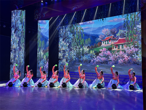 晚會在開場舞《回家過年》中拉開帷幕,演員們身著華麗的服裝,展現出新春的喜慶與活力,瞬間點燃了現場觀眾的熱情。緊隨其后的歌曲串燒《歡歌送福》持續發力,演員們用嘹亮的歌聲傳遞著美好的祝愿。隨后,舞蹈《頂水舞》、魔術《什么叫驚喜》、少兒節目《阮郎歸》、器樂合奏《桔梗謠+南泥灣》等13個節目輪番上演,內容豐富、形式多樣,接地氣、入民心。其中,寧波市北侖區文化館帶來的節目也是晚會的一大亮點。魔術表演《什么叫驚喜》中,魔術師憑借精湛手法與巧妙道具,帶來一系列令人目瞪口呆的神奇效果;《梅山舞獅》也把八仙桌搬到了春晚的舞臺上,演員們嫻熟地表演著翻轉、騰躍等驚險動作,將獅子的靈動與威武展現得淋漓盡致。精彩的節目不僅加深了南北非遺的交流推廣,也加強了兩地文化走親、促進民族文化的交往交流交融。