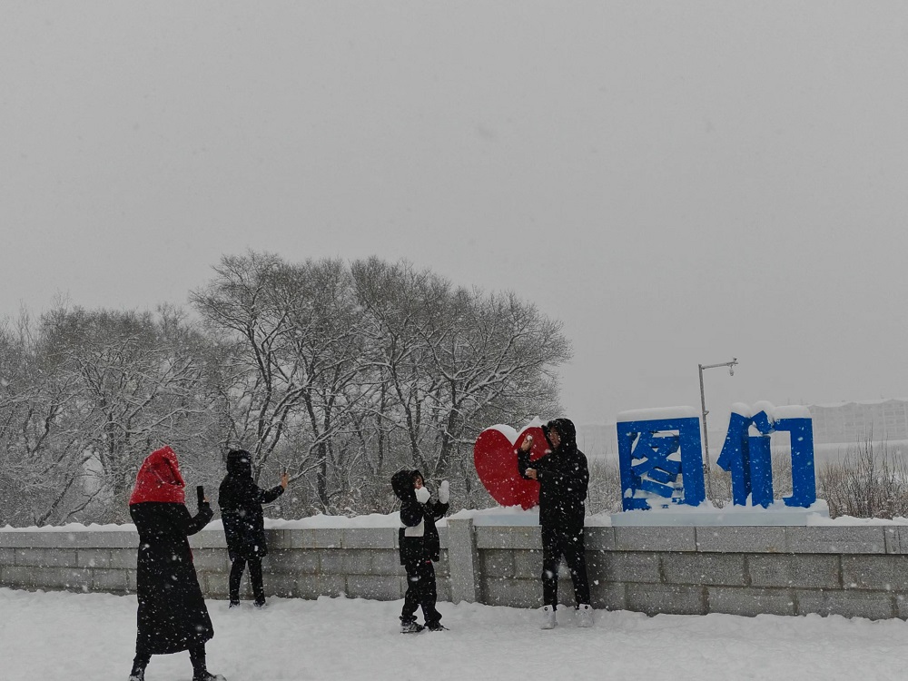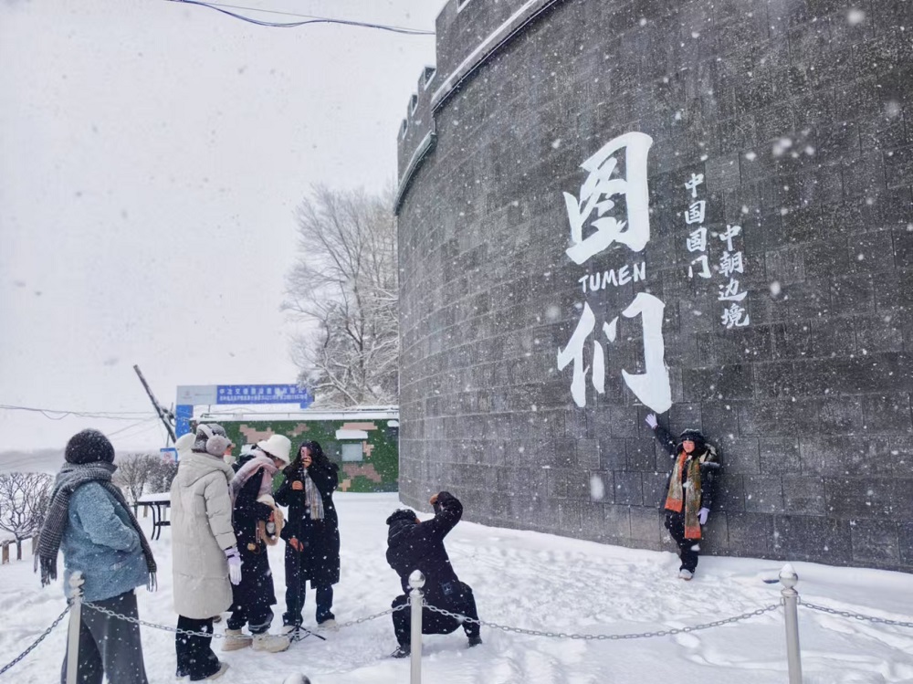 1月28日除夕,春節假期首日,圖們市迎來降雪,游客從全國各地而來,盡情欣賞邊疆雪景,到邊境線上的景區景點打卡,領略不一樣的風土人情。