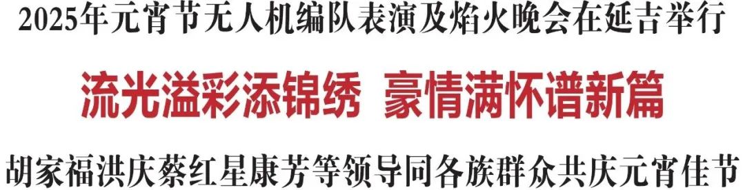 多彩焰火映夜空,絢麗光影送祝福。2月12日是農歷蛇年正月十五,當天夜晚,2025年元宵節無人機編隊表演及焰火晚會在延吉市精彩上演。省委常委、州委書記胡家福,州委副書記、州長洪慶,州人大常委會主任蔡紅星,州政協主席康芳等領導,同全州各族人民和廣大游客共賞精彩表演、共慶元宵佳節。