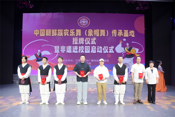 6月13日,中國(guó)朝鮮族農(nóng)樂(lè)舞(象帽舞)傳承基地授牌儀式暨非遺進(jìn)校園啟動(dòng)儀式在汪清縣中國(guó)朝鮮族農(nóng)樂(lè)舞展示館舉行。