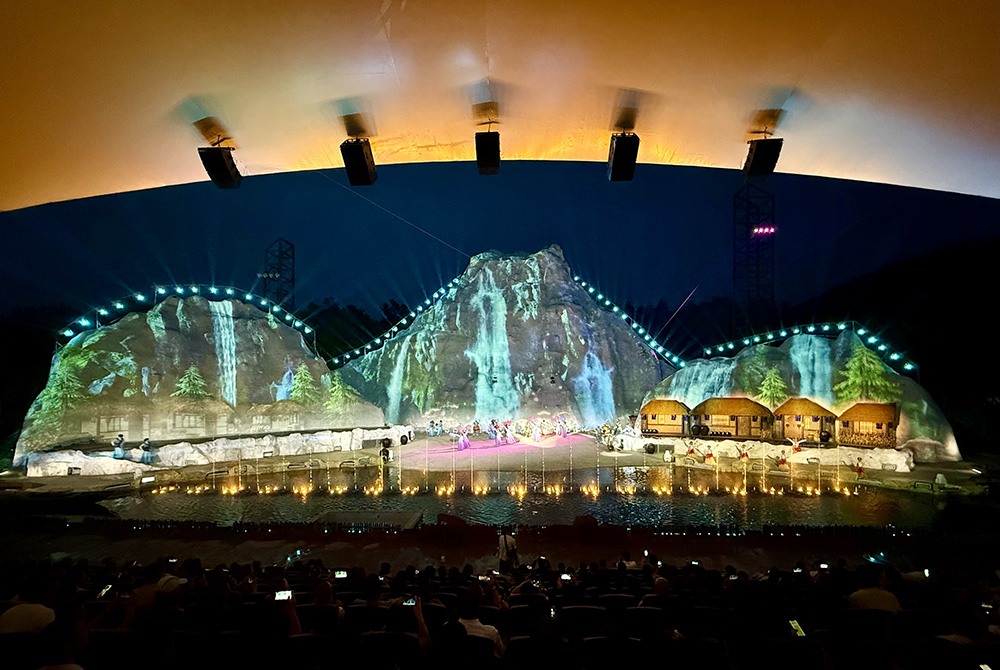 儀式結束后,《長白戀歌》2025年首演正式啟動。該劇以松樹和柏樹的愛情為主線,以朝鮮族和滿族兩個民族共同抵御水怪、建設美好家園的故事為副線,依托舞臺、假山與實景空間打造多層大視覺效果,實現區域光影聯動,巧妙融合虛擬與現實,穿越時間與空間,為觀眾帶來一場水舞交融、山水相映的視覺盛宴,帶領游客開啟一段穿越長白山“前世今生”的光影之旅。