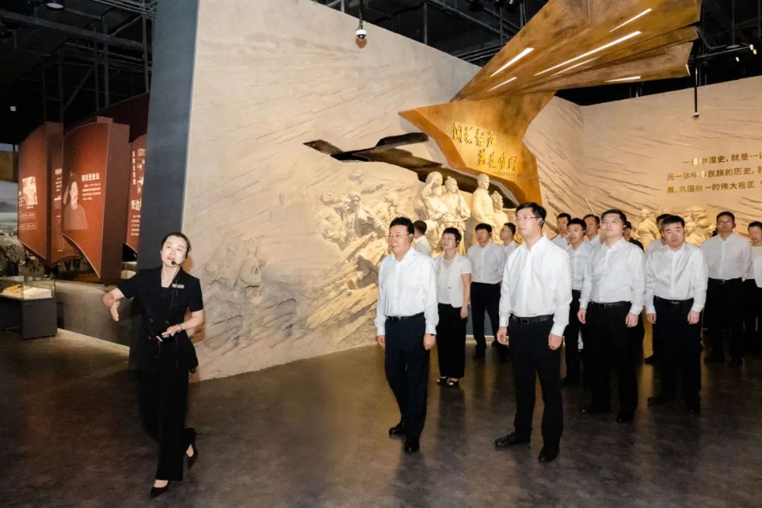 循著習近平總書記視察延邊的足跡,胡家福率州級領導首先來到延邊博物館。在講解員聲情并茂的講述下,大家認真觀看了《闖關越江 共建家園——延邊各民族交融匯聚艱辛開拓的滄桑歷程》、《一心向黨 永續輝煌——延邊各族人民推進民族團結進步事業的堅實足跡》等展陳,通過一幅幅珍貴圖片、一件件歷史實物,回顧了在黨的民族政策光輝照耀下,延邊民族團結進步事業、經濟社會發展取得的巨大成就。胡家福強調,我們要深入貫徹習近平總書記關于加強和改進民族工作的重要思想,準確把握黨的民族工作新的階段性特征,旗幟鮮明地把鑄牢中華民族共同體意識作為各項工作的主線,不斷創新發展民族團結進步事業,加快打造延邊民族團結進步升級版,努力實現“老模范”向“新典型”的歷史性跨越。