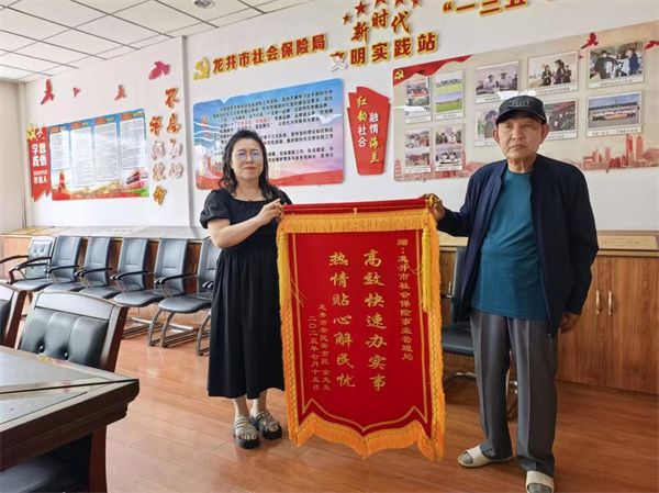 在社保局工作人員的溫情幫助下,困擾老人多年的退休難題終于圓滿解決。老人對此激動不已,特意送上錦旗,對工作人員盡職盡責、心系群眾、不辭辛勞為其排憂解難的暖心服務和高效工作表示由衷的感謝。