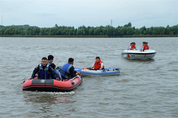 交警大隊負責對景區外圍封控,開通救援通道;圖偵大隊操作無人機向被困人員投放救生衣和餐飲物品;特警大隊與交通局執法大隊聯動配合,迅速完成船艇組裝,隊員們面對復雜水流,運用“S形繞樁”“360度回轉”等駕駛技術,精準完成遠程拋投救援物資、沖鋒舟救援等科目,成功將“被困群眾”轉移至安全地帶。