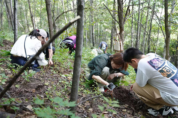 游客在奶頭山村參與挖參