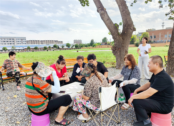 初秋的陽(yáng)光灑在延吉市進(jìn)學(xué)街道正陽(yáng)社區(qū)新建的休閑廣場(chǎng)上,一大片綠色草地宛如地毯般鋪展,令人心曠神怡。幾處用石子精心鋪設(shè)的休閑區(qū)域鑲嵌在綠地中,座椅、垃圾桶一應(yīng)俱全,還有盛開(kāi)的花海。老人們聚在一起聊天打牌,孩子們?cè)诓輩查g追逐嬉戲,處處洋溢著溫馨的生活氣息。