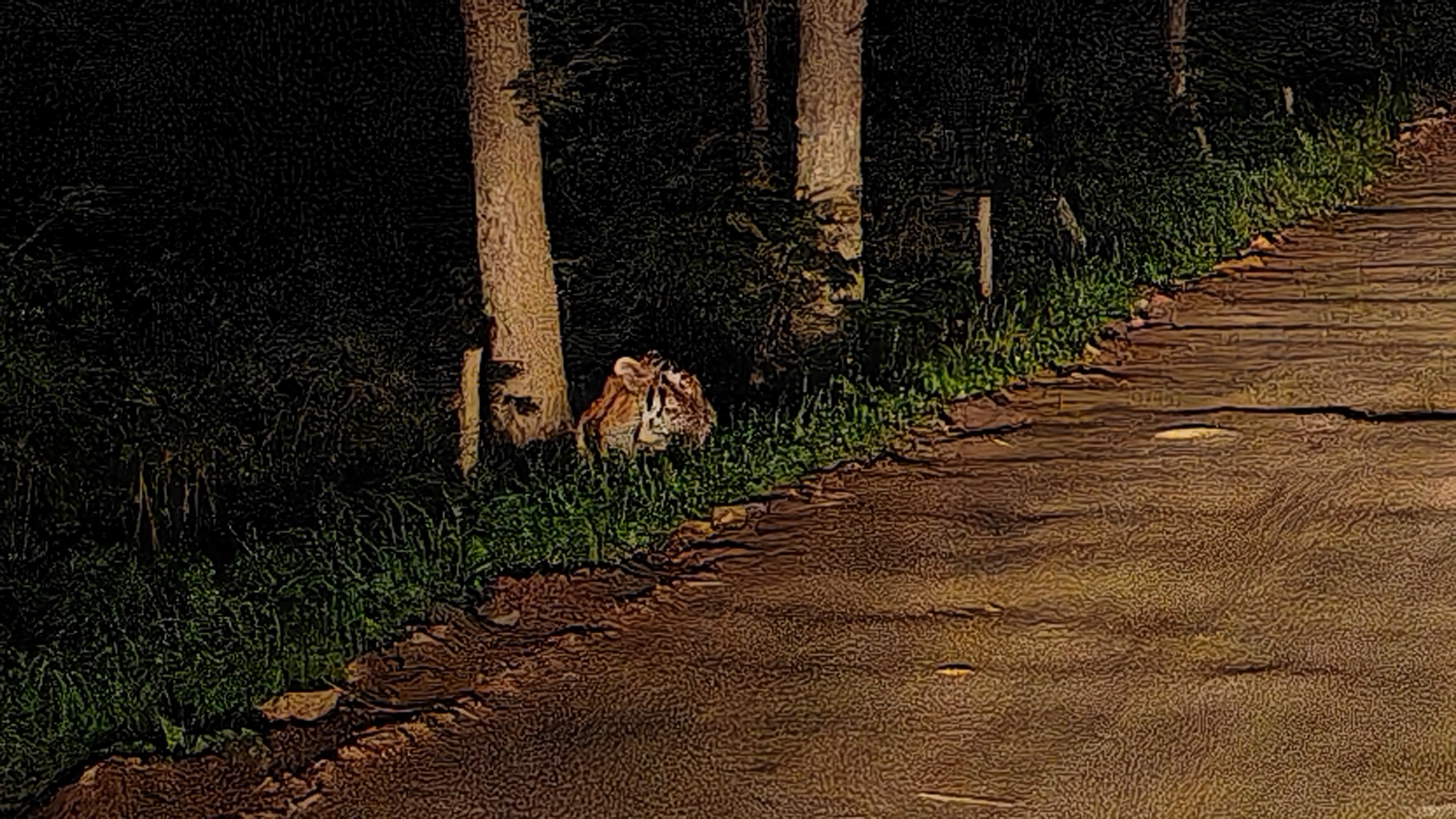 9月11日18時15分,吉林省公安廳森林公安局汪清森林公安分局沙金溝森林派出所民警在金溝嶺林場附近開展夜間巡邏時,與一只野生東北虎“面對面”相遇,民警立即停車。這只東北虎并沒有馬上離開,而是蹲在路旁的草叢中觀察警車數分鐘后,才不緊不慢地離開。整個相遇過程中,民警在與東北虎保持一定距離的情況下,守候著東北虎安全離開,同時手機記錄下東北虎現場視頻。