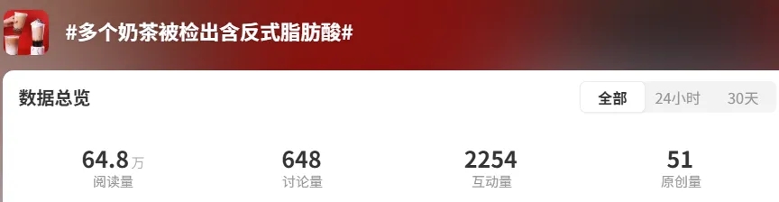 這些產品的反式脂肪酸含量從 0.011g/100g 至 0.113g/100g 不等。這一結果迅速引發了廣泛關注,也讓“奶茶控”們多了一份擔憂。