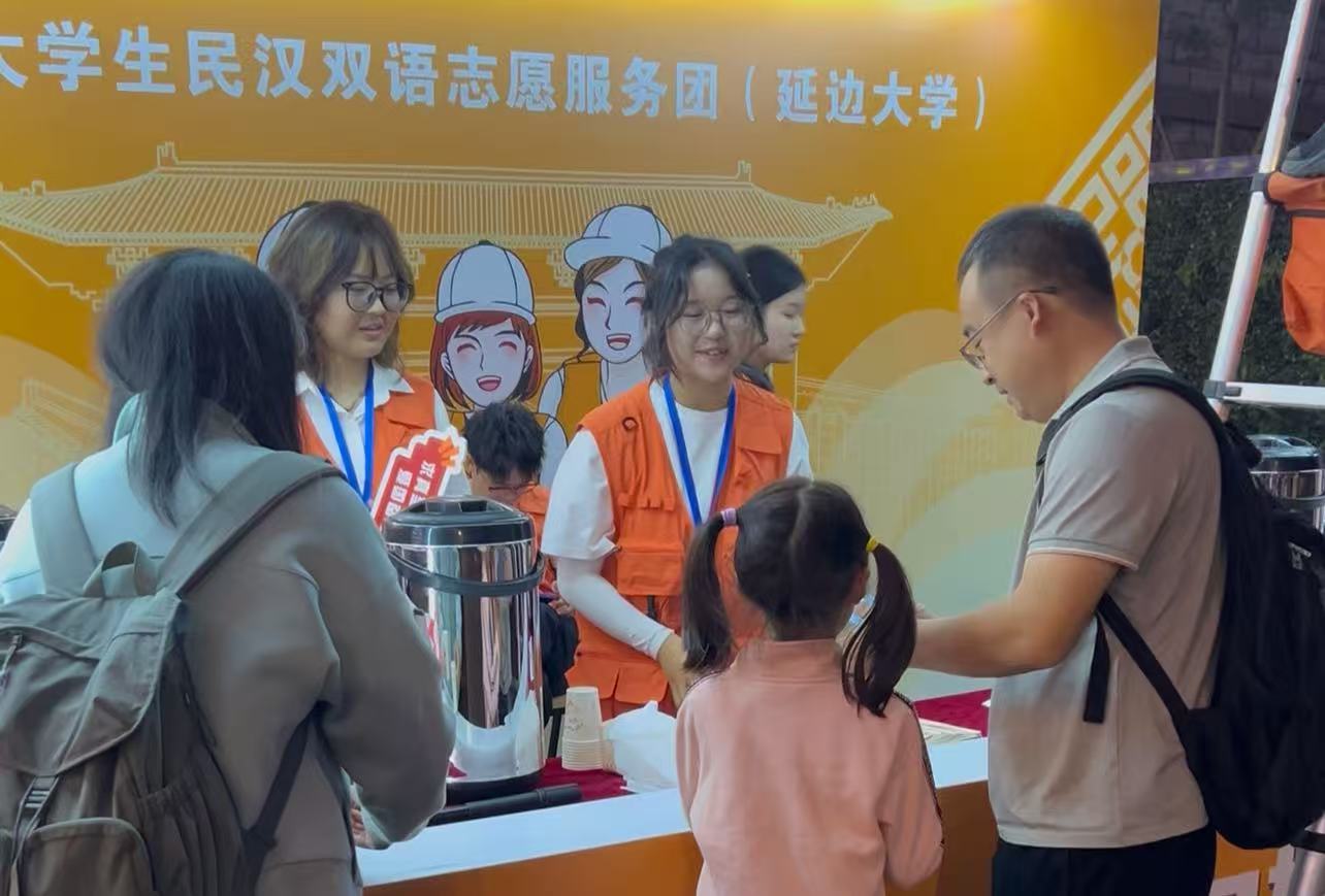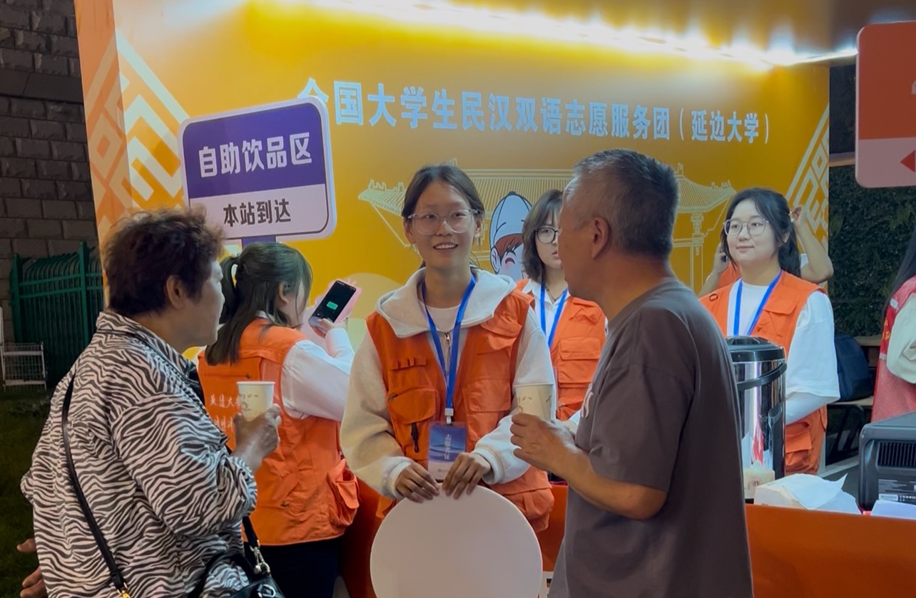 9月30日,記者在延吉西站與延邊大學正門看到,活動主辦方在這兩處分別設立“志愿紅”“活力橙”暖心服務站,多名志愿者身著紅、橙馬甲,分工有序地為游客提供暖心茶水、交通指引、手機充電、文旅咨詢等多項貼心服務。“下雨了,送您一件雨衣,祝您在延邊玩得開心。”“活力橙”志愿者李娜是延邊大學師范學院2022級小學教育專業學生,當天不僅為游客送去雨衣,還貼心地為老年游客倒上溫熱的飲用水,反復叮囑大家雨天路滑,行走與拍照時需注意安全。