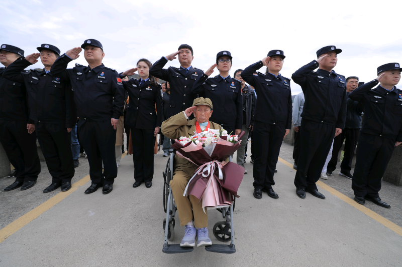 圖們出入境邊防檢查站民警在國門前為百歲抗美援朝老兵慶生 以國旗為榮 以信仰為禮