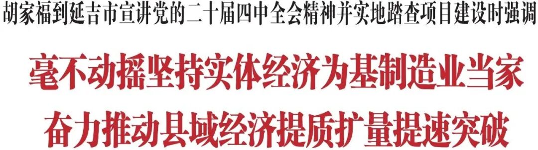 11月10日至11日,省委常委、州委書記胡家福深入延吉高新技術(shù)產(chǎn)業(yè)開發(fā)區(qū)和延吉國際空港經(jīng)濟開發(fā)區(qū)宣講黨的二十屆四中全會精神,并就項目建設(shè)進(jìn)行實地踏查。他強調(diào),要深入學(xué)習(xí)貫徹習(xí)近平總書記重要講話和黨的二十屆四中全會精神,切實把思想行動統(tǒng)一到黨中央關(guān)于國內(nèi)外形勢的基本判斷和重大決策部署上來,毫不動搖堅持實體經(jīng)濟為基、制造業(yè)當(dāng)家,凝心聚力加快項目建設(shè),鍥而不舍抓好招商引資,奮力推動縣域經(jīng)濟提質(zhì)擴量、提速突破。