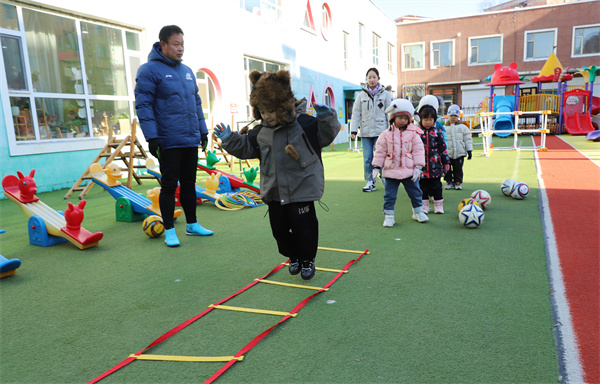 近日,安圖縣青少年業余體校教練走進縣第二幼兒園,通過趣味游戲與小型競賽相結合的方式,為孩子們帶來了一堂生動的足球運球啟蒙課程。孩子們在輕松愉快的氛圍中體驗足球樂趣。