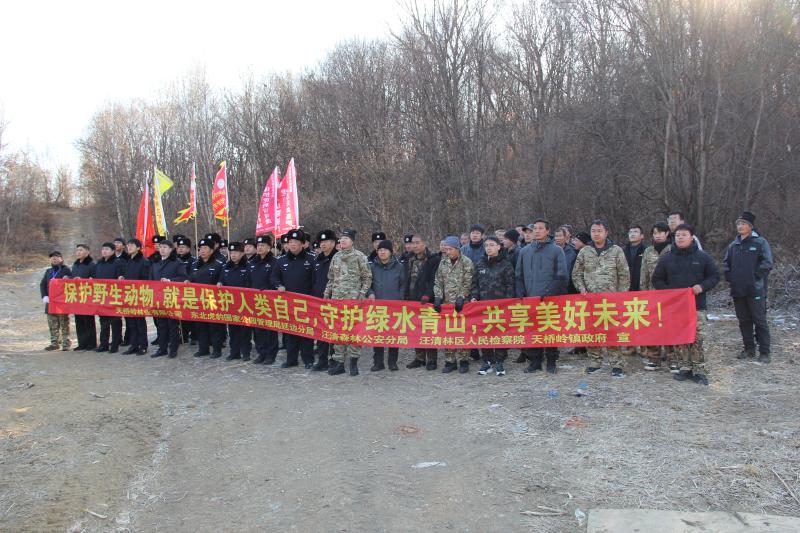 為做好東北虎豹及棲息地的保護工作,嚴厲打擊非法盜獵行為,切實保護野生動物資源安全,11月19日,省公安廳森林公安局汪清森林公安分局聯合天橋嶺林業有限公司、東北虎豹國家管理局延邊分局、汪清林區人民檢察院、汪清林區基層法院、天橋嶺鎮人民政府,在天橋嶺東北虎豹文化廣場隆重舉行保護東北虎豹及其棲息地暨2025年至2026年清山清套反盜獵專項行動啟動儀式。