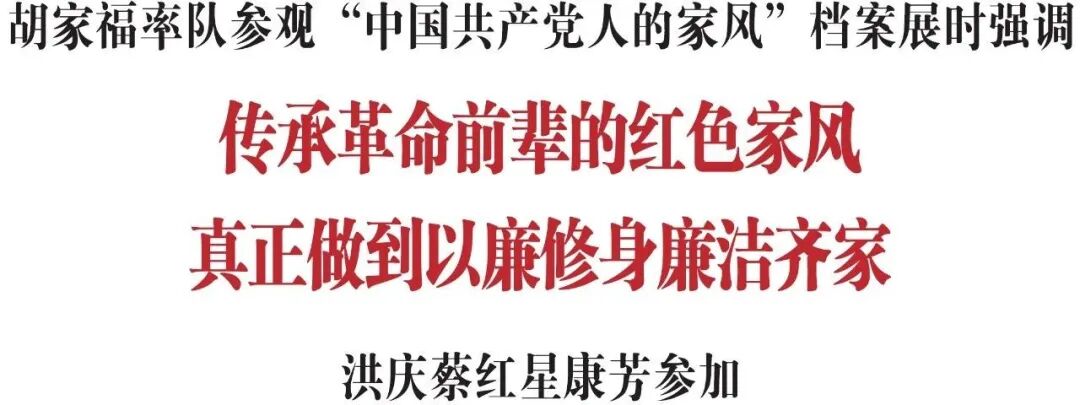檔案展包含“老一輩革命家的家風”“革命先烈的家風”“新中國成立以來優秀共產黨員的家風”三個單元和一個家書視聽室,生動講述了在革命、建設和改革的不同歷史時期30多位優秀共產黨員特別是老一輩革命家的家風故事。胡家福率隊依次參觀各單元,認真傾聽講解,頻頻駐足觀看,通過一封封珍貴家書、一則則處世家訓、一張張歷史照片,直觀感受不同歷史時期中國共產黨人以德傳家、以學興家、以儉持家、以嚴治家、以廉守家的優良家風和崇高風范。胡家福說,本次展覽真實反映了中國共產黨人重視家風建設的優良傳統,生動詮釋了中國共產黨人的革命信仰和道德情操。要用好這一現場課堂,精心組織開展參觀學習,教育引導廣大黨員干部從中國共產黨人的家風故事中汲取信仰力量、賡續優良作風,做到清白做人、干凈做事、嚴以修身、廉以持家。