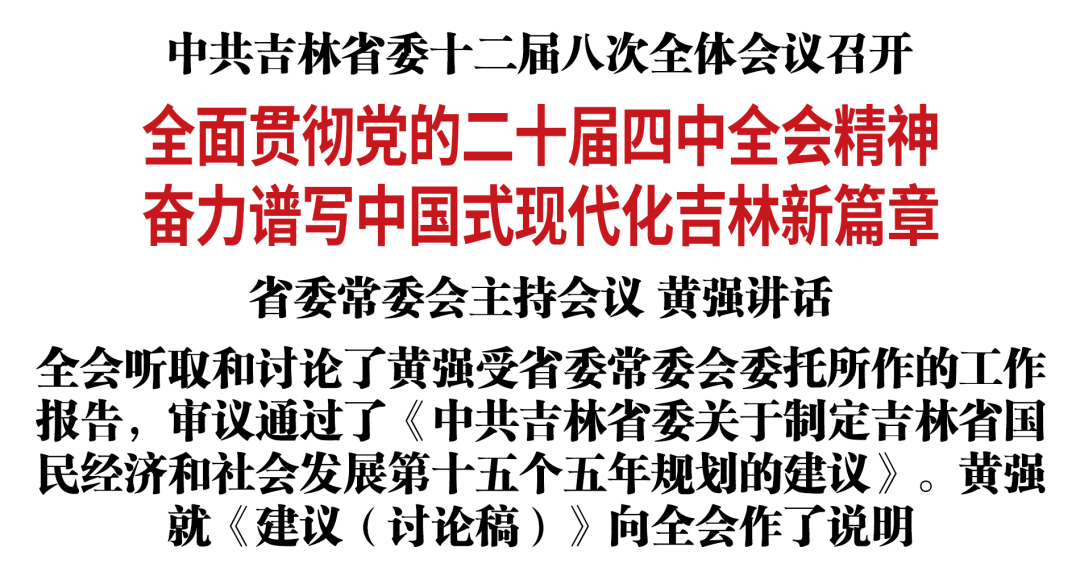 全會號召,全省廣大黨員干部群眾要更加緊密地團結在以習近平同志為核心的黨中央周圍,抓住機遇、乘勢而上,勇于創新、苦干實干,為圓滿完成“十五五”時期經濟社會發展目標任務、全面建設社會主義現代化新吉林而努力奮斗!
