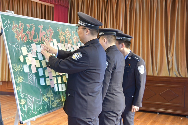 三合邊檢站民警竇常龍向師生們闡述了國家公祭日的歷史背景與深遠意義,激勵學(xué)生們銘記歷史、肩負使命,為民族復(fù)興而努力學(xué)習(xí)。民警與師生共同在彩色卡片上寫下對祖國與和平的誠摯祝福和期盼,并張貼于“祝福墻”上。
