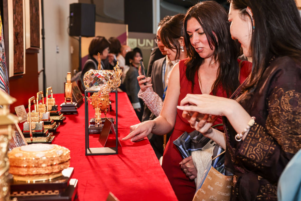 ↑2025年5月19日,在位于紐約的聯(lián)合國總部,人們參觀故宮文創(chuàng)展?!吧幌ⅰ蕦m文創(chuàng)走進聯(lián)合國主題展”開幕式暨故宮博物院成立100周年郵票發(fā)布儀式5月19日在聯(lián)合國總部舉行,120余位各國駐聯(lián)合國大使及國際組織代表參加。