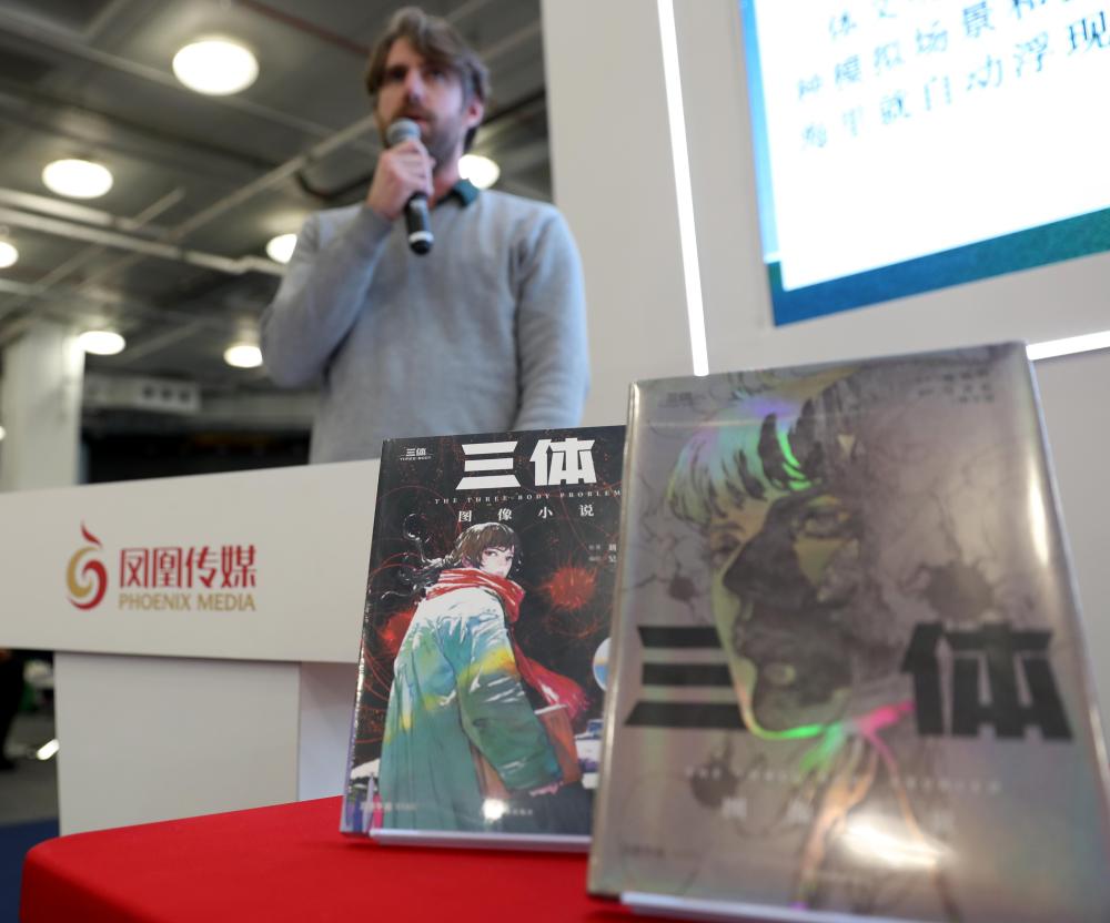 ↑2025年3月11日,嘉賓在英國倫敦書展上舉行的《三體》圖像小說國際版權(quán)推介會上發(fā)言。在3月11日開幕的2025年倫敦書展上,書展前總監(jiān)、英國勵展集團投資組合總監(jiān)加雷思·拉普利表示,中國出版業(yè)在童書、印刷解決方案、學(xué)術(shù)出版等領(lǐng)域都取得長足進步,對業(yè)界產(chǎn)生巨大影響。2025年倫敦書展3月11日在倫敦奧林匹亞展覽中心開幕,來自中國的多家出版商接連舉辦文化交流活動,中國展商數(shù)量及參與活動數(shù)量再創(chuàng)新高。