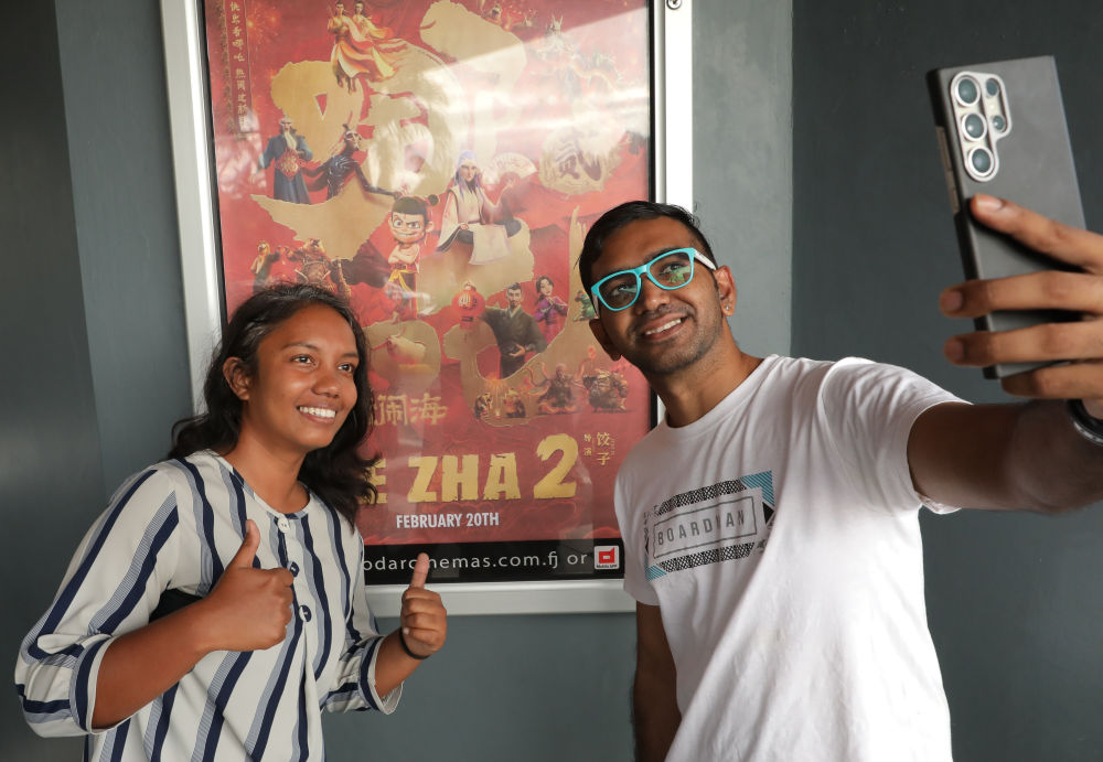 ↑2025年2月20日,在斐濟首都蘇瓦,觀眾在《哪吒之魔童鬧?!冯娪昂笄白耘摹l碀锥继K瓦市達莫達爾影院市場部經(jīng)理克利夫表示,在2月20日電影上映的首日,蘇瓦的兩家影院原本共安排放映兩場,但因網(wǎng)上預(yù)售火爆,影院臨時安排加映3場,此后每天均安排4至5場。