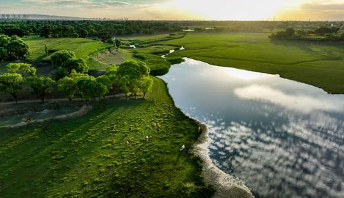 陜西靖邊:蘆河無聲惜細流 樹蔭照水聞鳥語